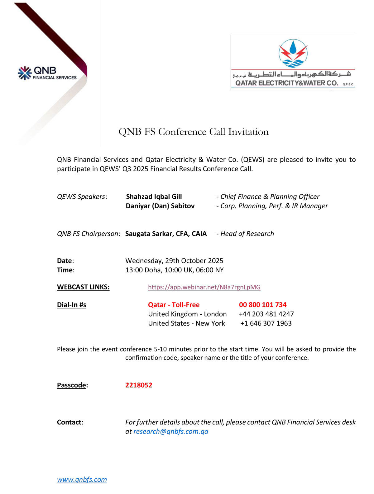 Q3 2025 Conference Call Invitation